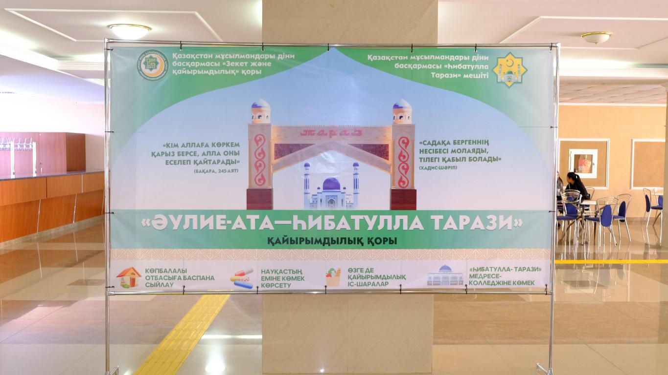 ҚМДБ-ның Жамбыл облысы бойынша бас имамы Бейбіт Мырзагелдиев пен Тараз қаласының бас имамы Орынбасар Дәуренбеков сахнаға шығып, құттықтау сөз сөйледі. "Һибатулла Тарази" және "Әулие ата" атты қайырымдылық қорының ашылғанын сүйіншілеп, қорға тағайындалған басшыға баталарын берді.