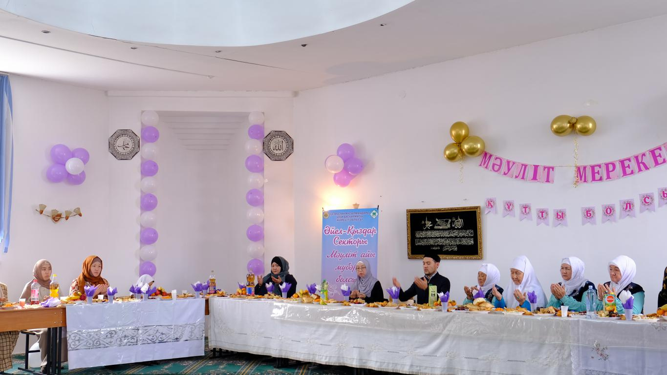 Облыстық "Һибатулла Тарази" мешітінде ҚМДБ-ның Жамбыл облысы бойынша Әйел-қыздар секторының ұйымдастыруымен әйелдер жамағатына арналған Мәуліт рухани кеші өтті.