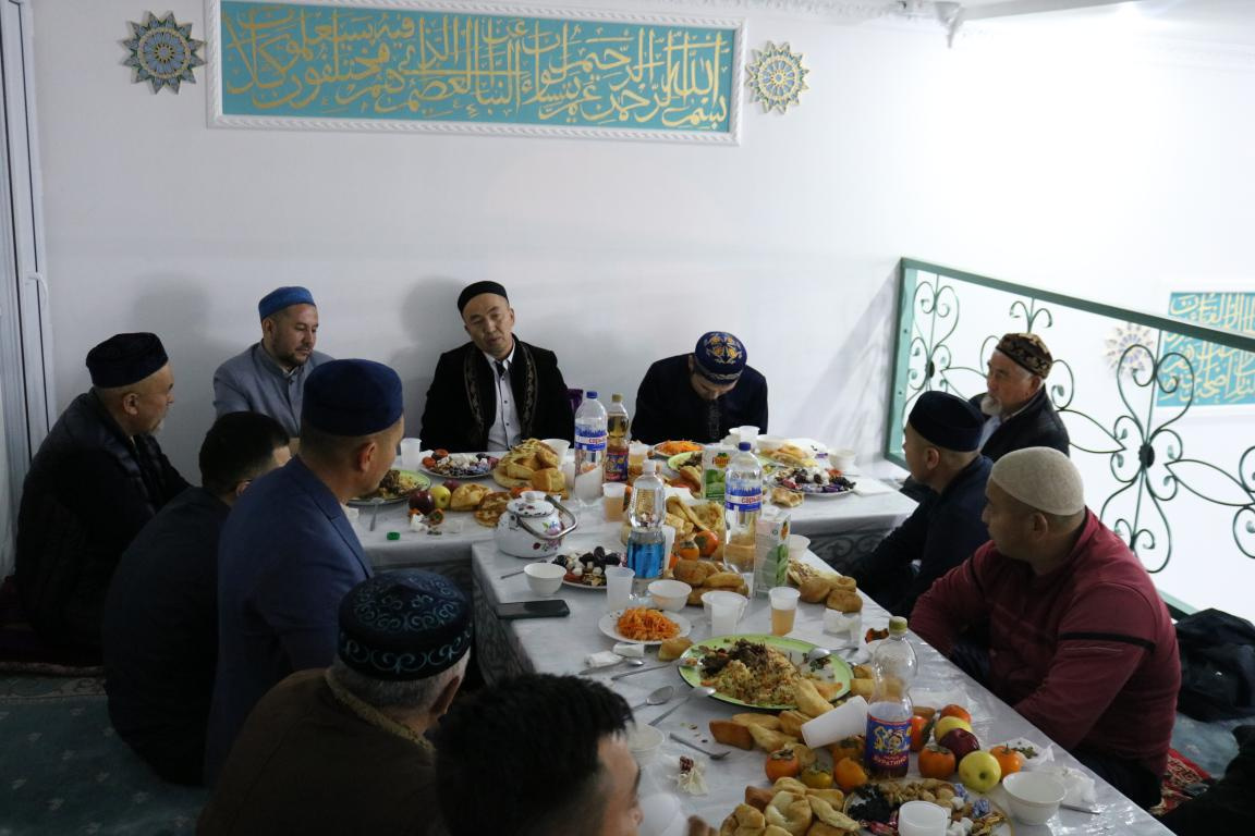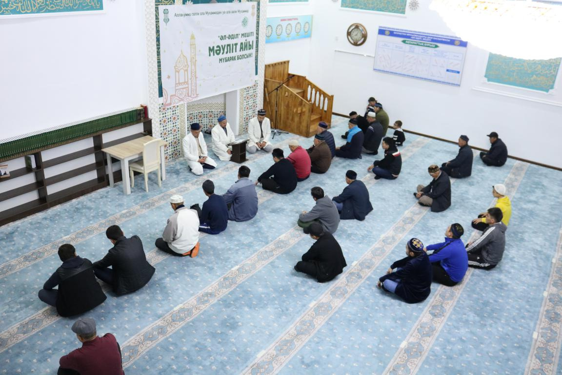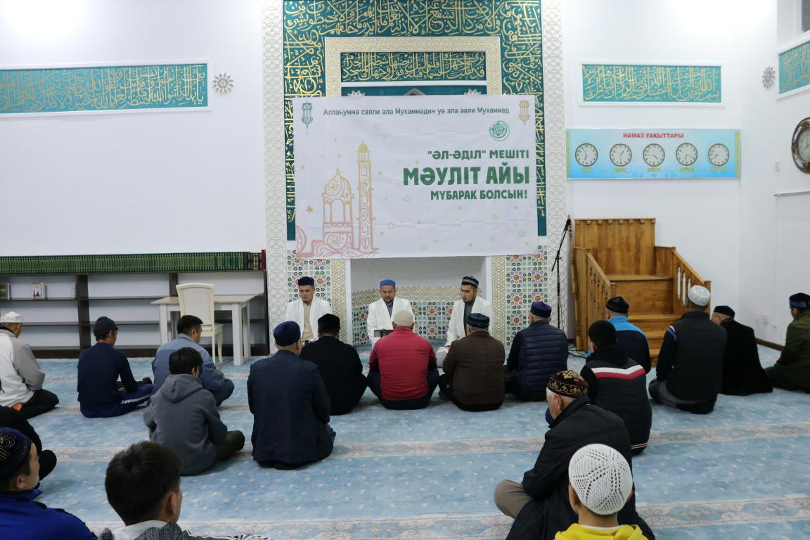 «Әл-Әділ» мешітінің имамы Сыбанбай Расылхан келген көпшілікке дастархан жайып, ас берді. Дастархан басында қаланың бас имамы Пайғамбарымыздың (с.а.у.) өмірі жайлы уағыз-насихат айтып, Пайғамбарды танып-білу әрбір мұсылманның міндеті екендігін жеткізді.