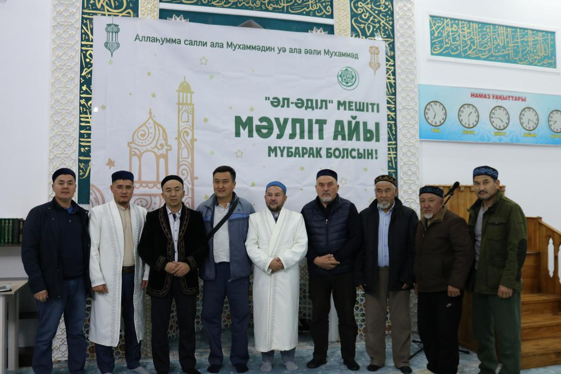 Тараз қаласы «Әл-Әділ» мешітінде мәуліт кеші болып өтті. Құптан намазына жиналған жамағатқа «Айсұлу ана» мешітінің имамы Баймаханов Ораз арапша және қазақша өлең шумақтарымен Пайғамбарымыздың (с.а.у.) өмірін қысқаша баяндады. Кешке Тараз қаласының бас имамы Дауренбеков Орынбасар мен қалалық орталық «Әулие ата» мешітінің наиб имамдары арнайы шақырылды.