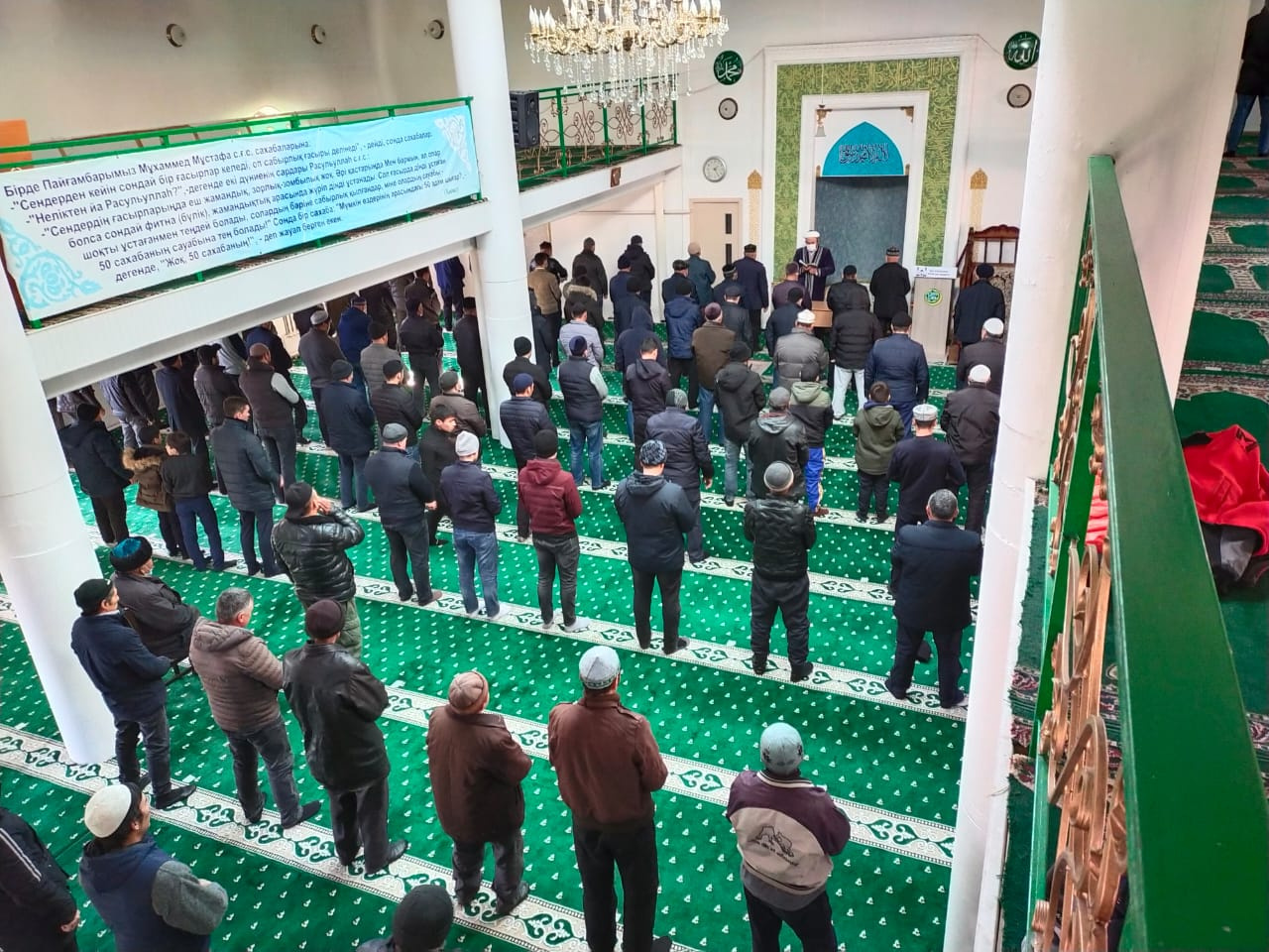 Аталған мешіттің бас имамы Талғат Кәрібайұлы мешітке жиылған жамағатқа мәуліт оқып, ардақты Алла елшісінің (Оған Алланың салауаты мен сәлемі болсын) өнегелі өмірін баян етті. Көпшілік тік тұрып салауат оқып, сүйікті Расуліне сәлем жолдады. Мәуліт соңында бас имам Құран аятын оқып, дұға қылып аталмыш шараны тәмәмдады.