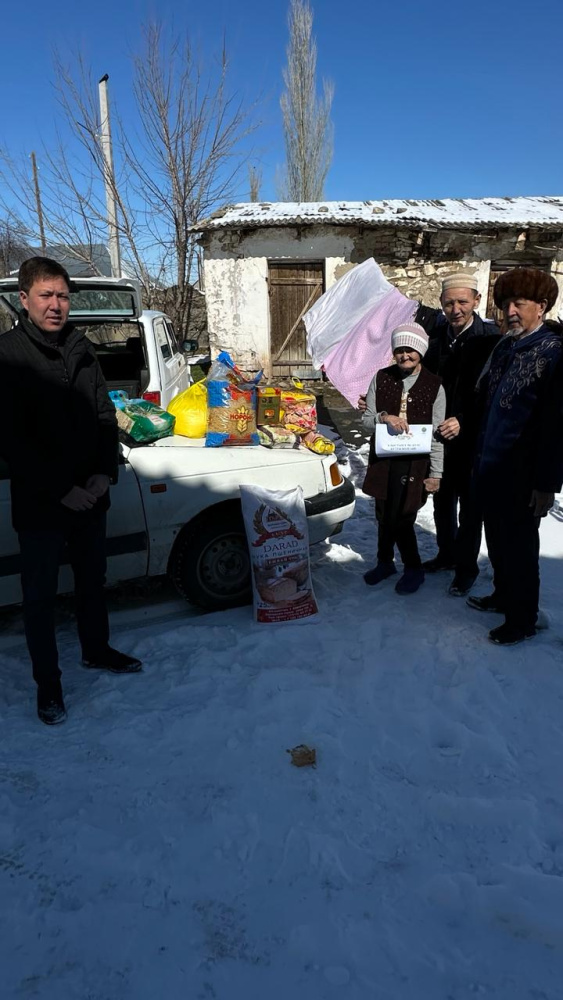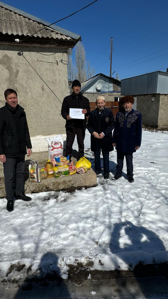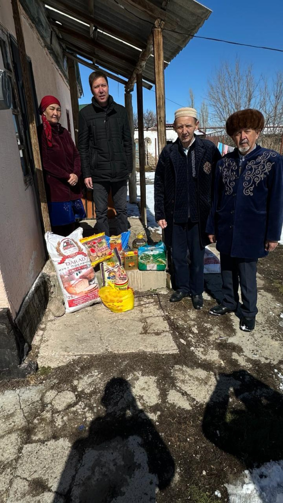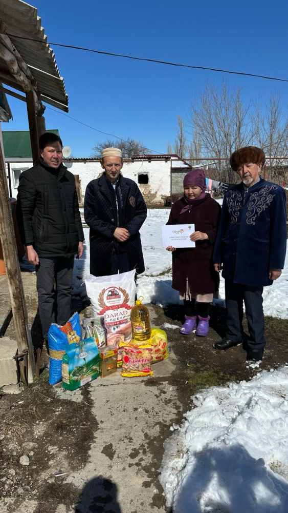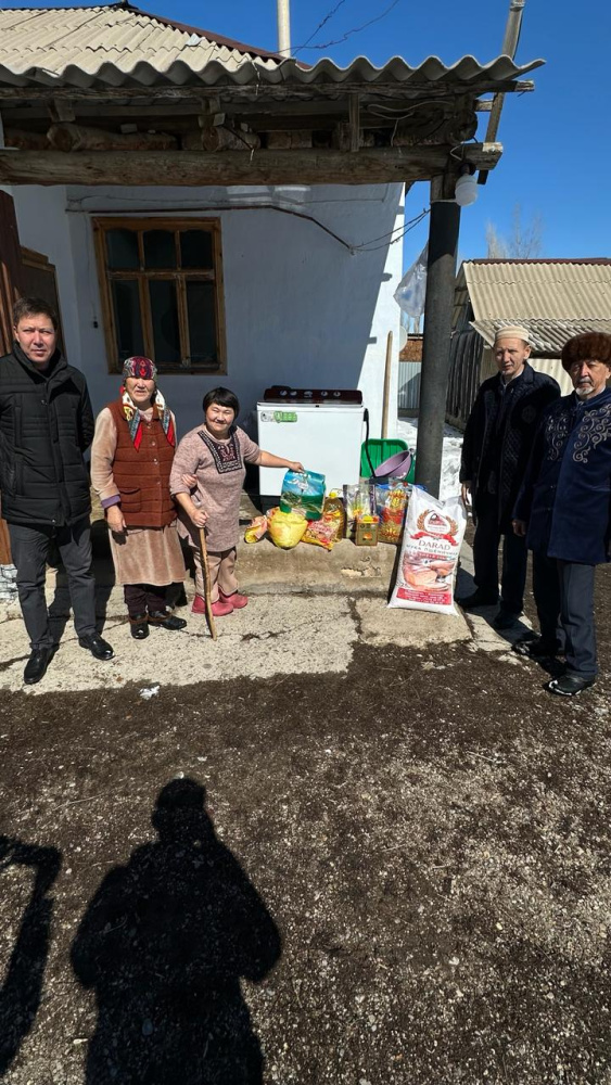 "Қайрат" мешітінің молдасы Бегәділұлы Саурамбек және қариялар мұқтаж жандарға ізгі ниеттерін білдіріп Ораза айт мерекесімен құттықтады.