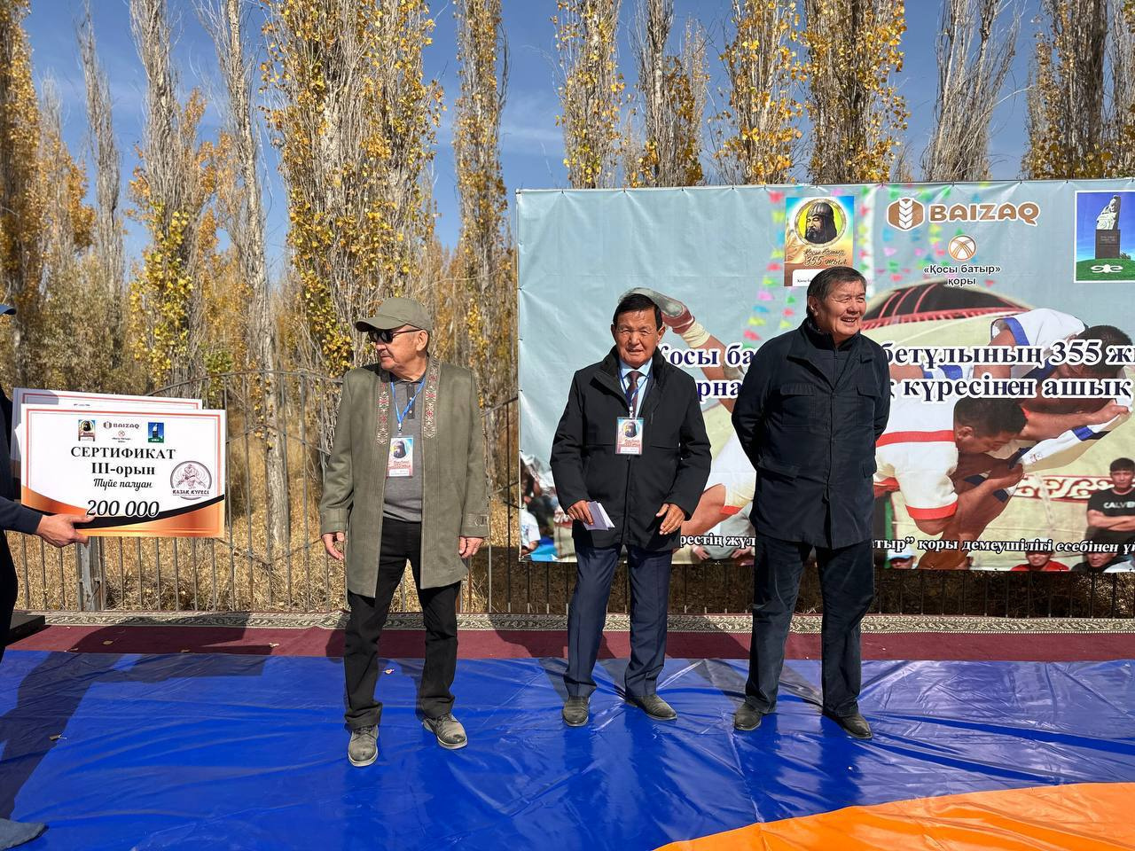 Байзақ ауданының бас имамы бастаған имам молдалар халықпен бірге Қосы батыр Сәмбетұлының 355 жылдық мерейтойында қазақ дәстүрін насихаттау мақсатында Қосы батыр ауылында қазақша күрес пен қошқар көтеруден жарысты тамашалады. Жарысқа өңірдің үздік балуандары қатысып, Қосы батырдың ерлік рухын бойларына сіңіргендей, намысты дода көрсетті. Ерік-жігері мен намысы сыналған спортшыларға арнайы сыйлықтар мен дипломдар табыс етілді.