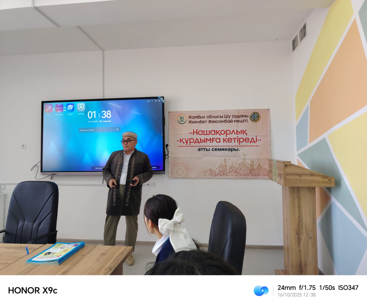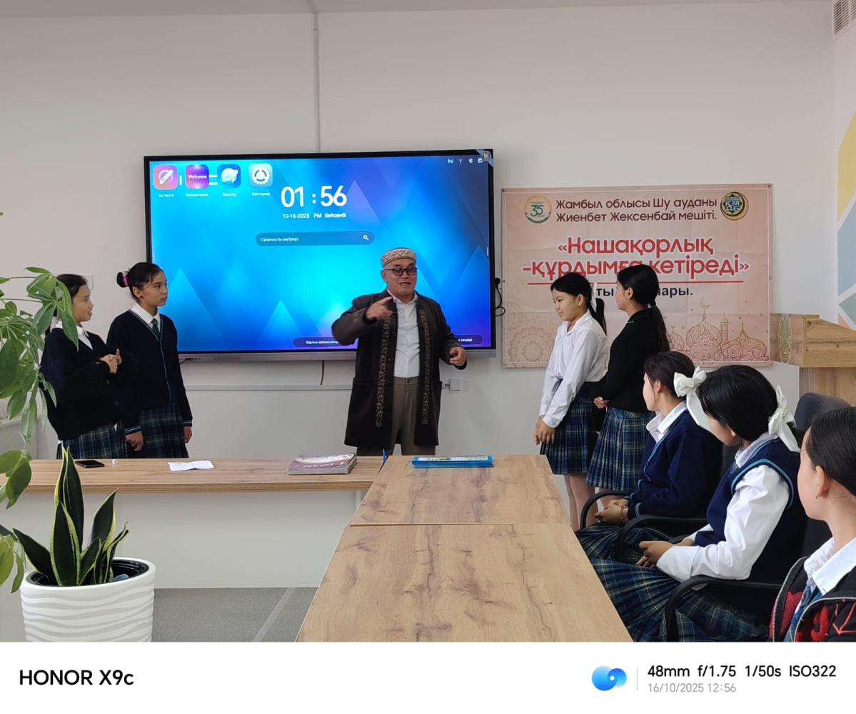 Шу ауданына қарасты «Жиенбет Жексенбай» мешітінде ел жүрегіне жылылық ұялатқан ерекше жиын өтті. Мешіттің имамы Бердібеков Шүкірәлі бастаған ұжым нашақорлық сияқты ғасыр дертіне қарсы рухани үндеу жариялап, ақсақалдар, аналар мен жасөспірімдер бас қосқан тағылымды семинар өткізді.