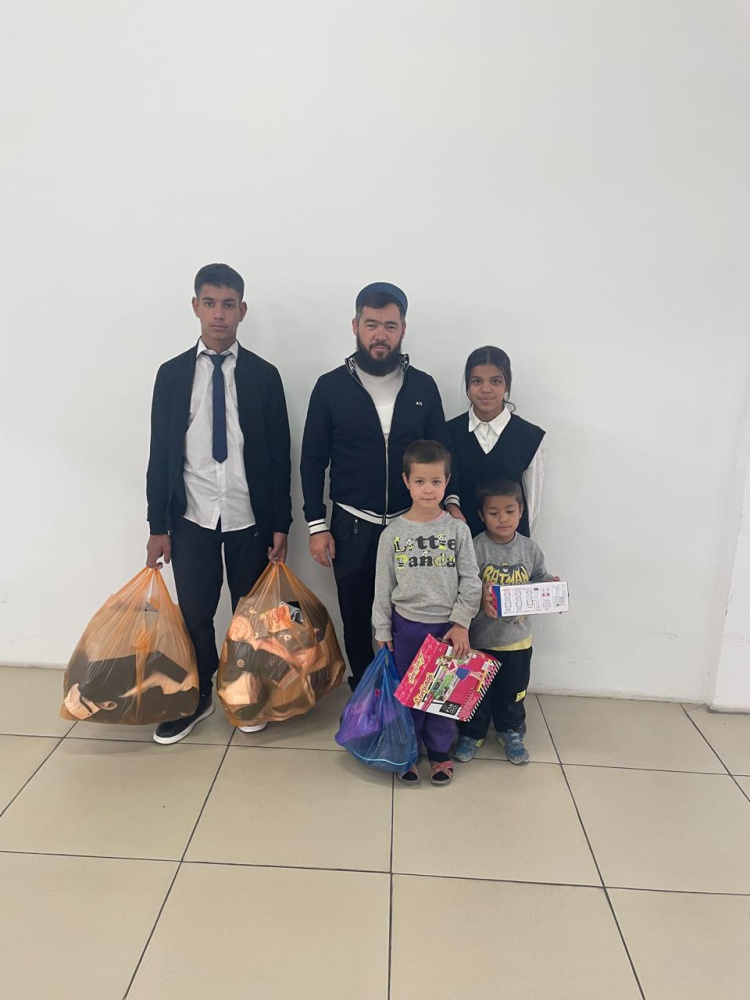 Мұқтаж отбасының 4 баласына, атап айтқанда екі ұл, екі қызына толықтай күздік және қыстық аяқ- киімдер, спорттық киімдер мен мектепке керекті жабдықтарын алып берді.