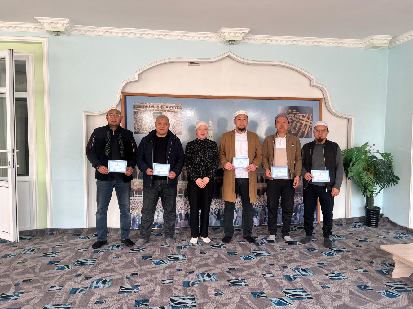 Жамбыл облысы, Қордай ауданы, Сортөбе ауылдық округіндегі мешіт имамдарынан құралған қазақ тілі курсының тыңдаушыларына «Тілашар» бағдарламасы бойынша арнайы анықтамалар табысталды. Бұл бастама – ел бірлігі мен тіл үйрену мәдениетін арттыруға бағытталған игі қадам. Баршамыздың ниетіміз қабыл, істеріміз баянды болсын!
