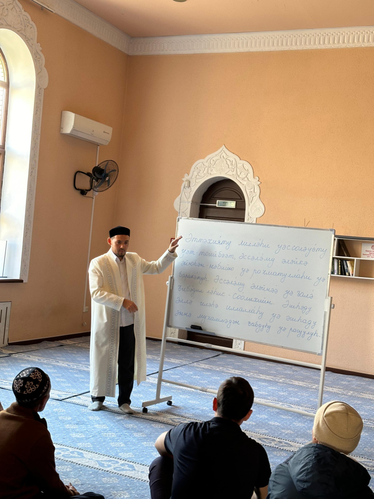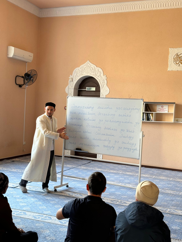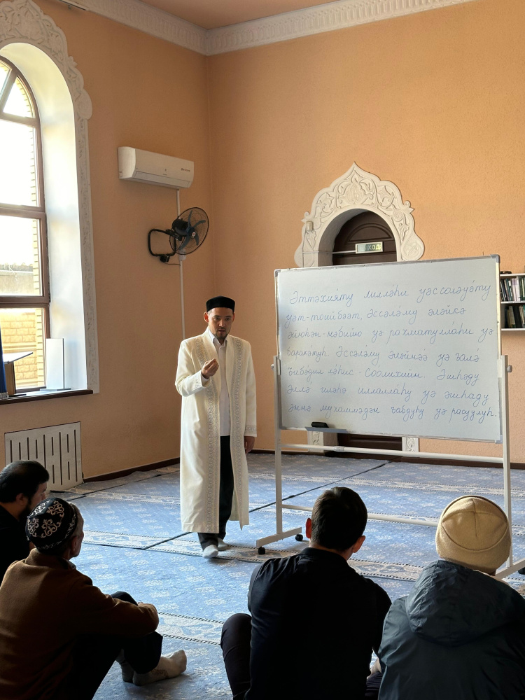 Мешіттің имамы Сейдикаримов Сәкен әр апта сайын өткізілетін бұл дәрістерде мұсылманның күнделікті өміріне қатысты тақырыптарды қамтиды. Дәрістерде намаздың әдептері, отбасылық қатынастардағы жауапкершілік, сабыр мен шүкірдің маңызы, жастардың тәрбиесі секілді өзекті мәселелер кеңінен түсіндіріледі.