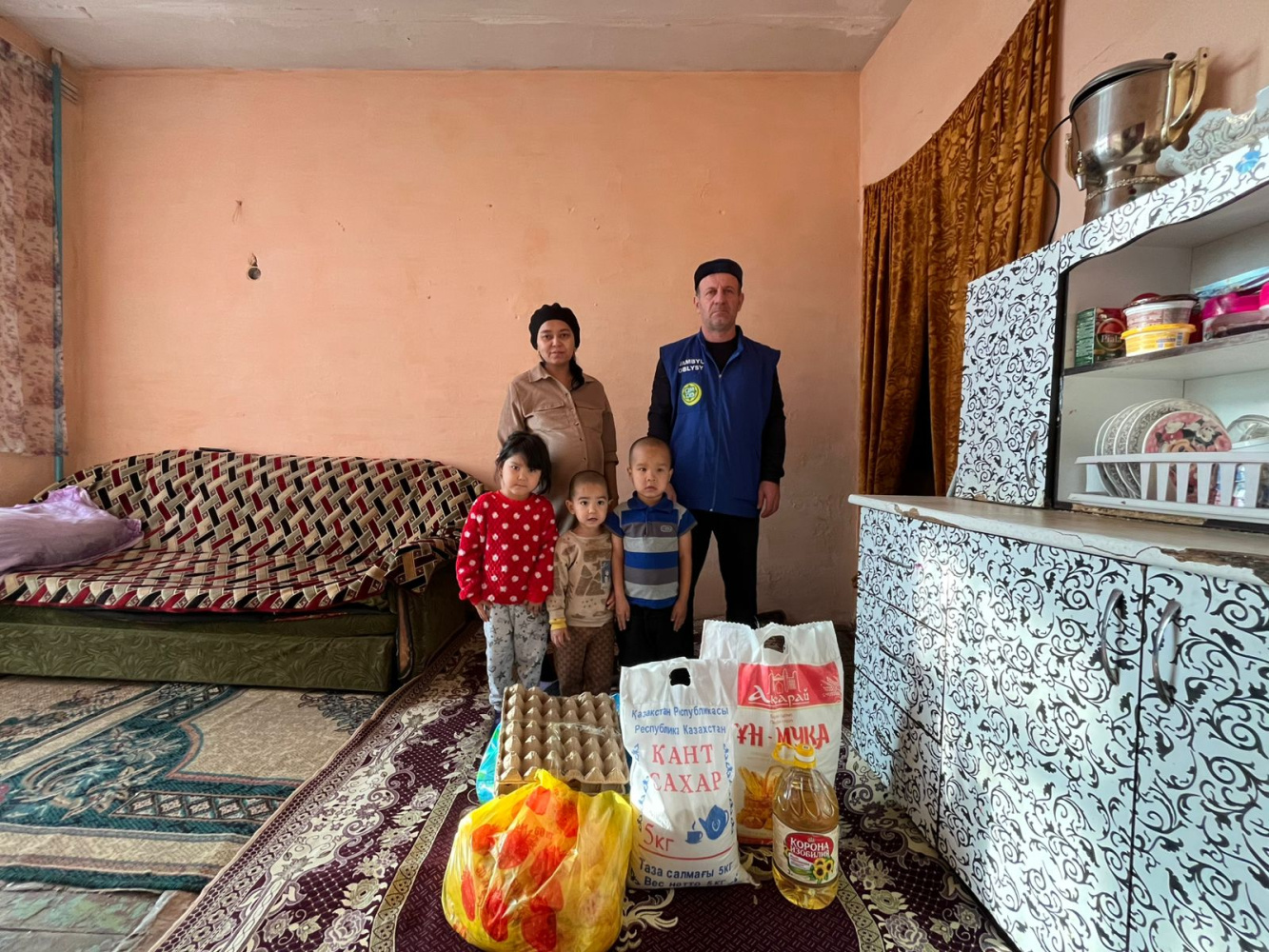 Қайырымдылық науқаны аясында 1 бас қой сойылып, оның еті 4 отбасыға таратылды. Сонымен қатар, күнделікті тұрмысқа қажетті азық-түлік қоржындары көпбалалы отбасыларға сыйлық ретінде үлестірілді. Бұл игі іс тұрғындардың көңіліне үміт ұялатқан, бірлік пен мейірімділікті нығайтқан шара болды.