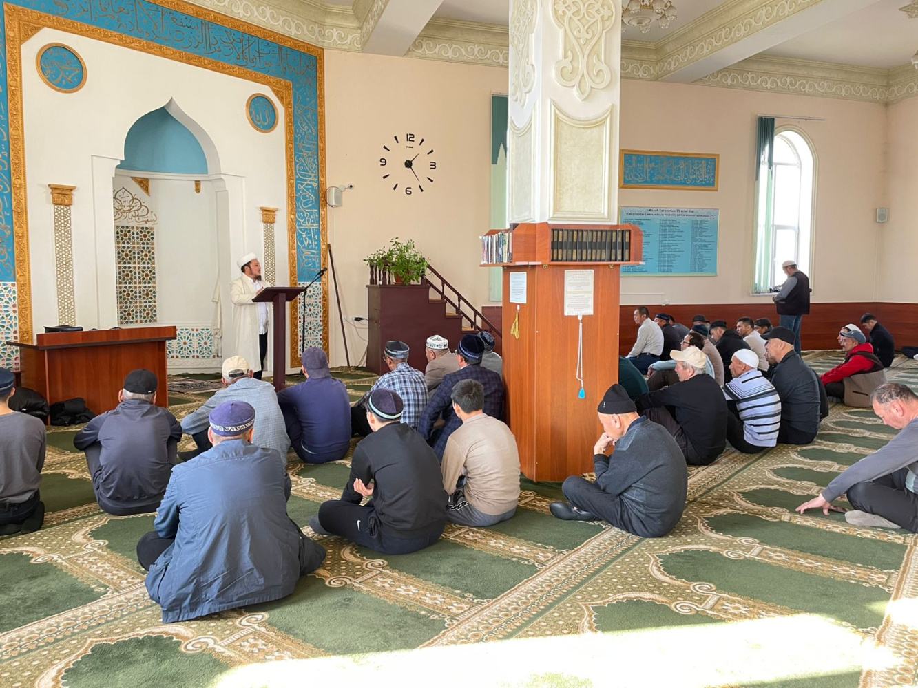Жамбыл ауданының орталығы Аса ауылындағы аудандық "Бәйдібек" мешітінің бас имамы Даурен Құттыбаев мешітке жиналған жамағатқа "Дін мен дәстүр сабақтастығы" тақырыбында сұқбат өткізді.