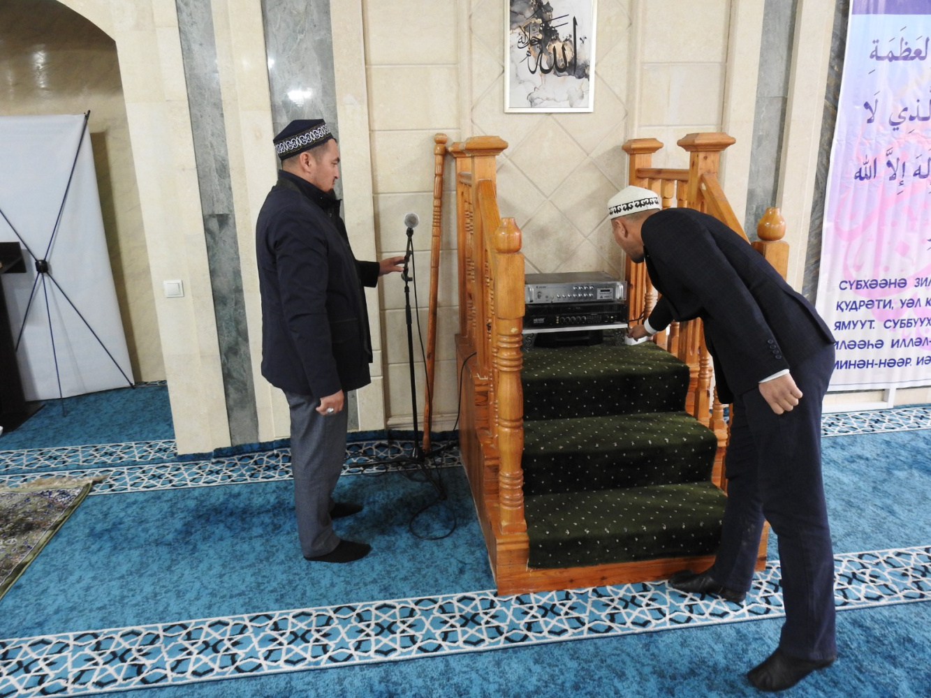 Қордай ауданының бас имамы Азамат Берікұлы аудандық «Қордай» мешітінде дыбыс күшейткіштер мен микрофондардың жұмысын қадағалады. Тексеру барысында жабдықтардың сапасы, дыбыстың анықтығы және намаз барысында жамағатқа қолайлы естілуі назарға алынды.